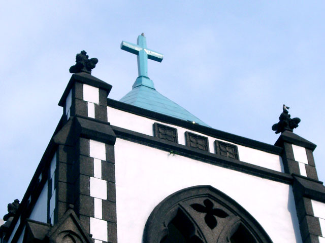 經過詢問,一位就讀古蹟研究所的學生說,中山教會的建築呈現哥德風貌,那個令我好奇的叫做「尖頂式」,也可稱為「十字花式」。