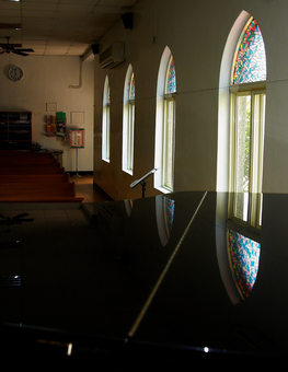 小教堂,靜靜地躺臥小山坡上。 一個窗框,逾九十個年頭,該說是冷靜還是寂寞呢?框裡展演了歷代信徒的堅強,軟弱;歡笑與眼淚。 窗外,誰在默默看守?保守著這一幕,接著下一幕.......。 看顧著光影錯落,交連不斷的時間切片。 人一生的年日有限,但神看千年如已過的昨日。 在窗裡窗外亙古不變的,是神的恩典。